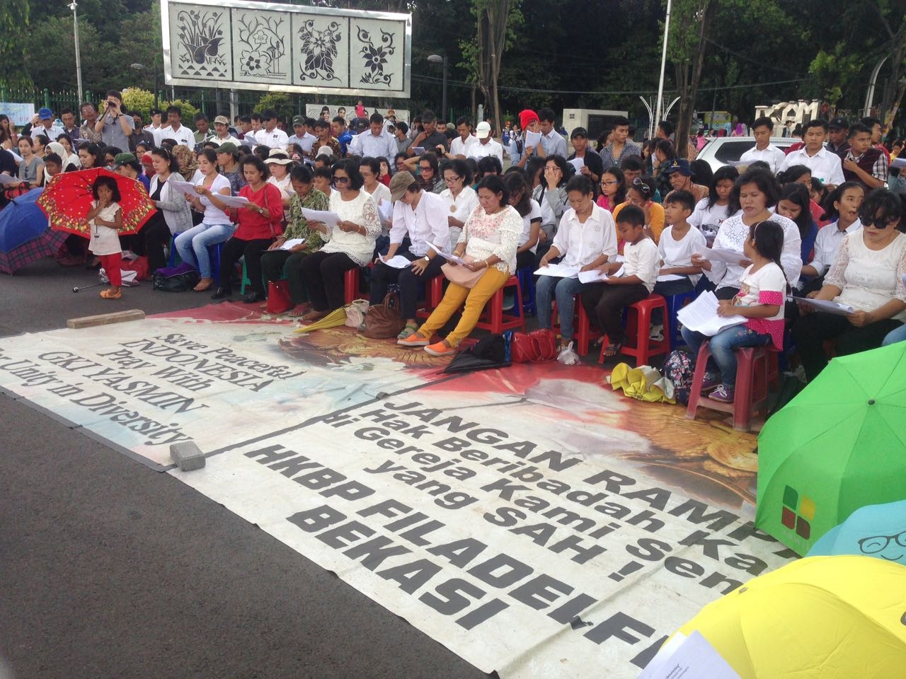 Sementara itu, HKBP Filadelfia, Bekasi sudah melangsungkan ibadah di depan Istana sejak Februari 2012. Ini adalah buntut dari pembangkangan Bupati Bekasi terhadap keputusan izin pembangunan gereja yang sudah disahkan Pengadilan Tata Usaha Negara (PTUN) Bandung pada September 2010 dan Mahkamah Agung pada Juni 2011.