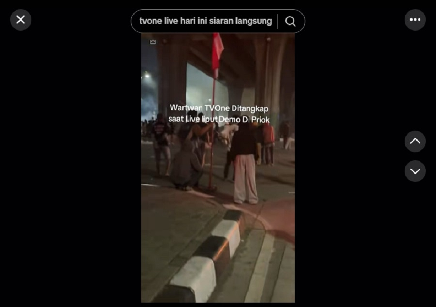Kekerasan terhadap jurnalis juga disaksikan jelas oleh publik pada Minggu dini hari (31/8), saat Jurnalis TV One Leo Chandra ditangkap, dipukul serta mengalami intimidasi saat siaran langsung melalui akun media sosialnya.
