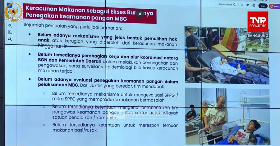 5. BGN agar mengevaluasi Satuan Pelayanan Pemenuhan Gizi (SPPG) yang diduga lalai dalam proses produksi, distribusi, dan penyajian makanan dalam MBG.
