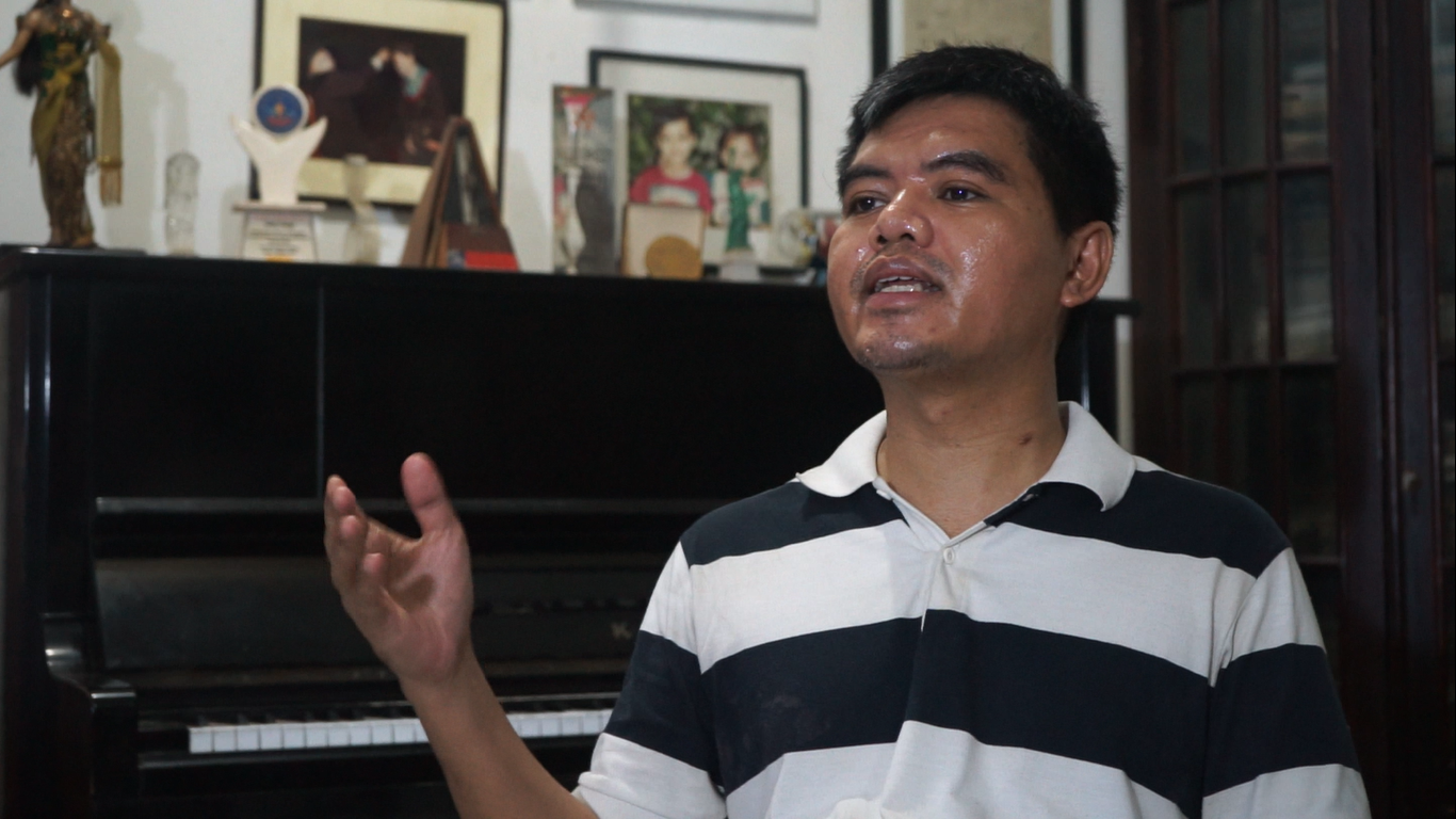 KBR, Jakarta - Baja Suseno (41) menyambut Tim KBR di rumahnya di Tangerang, Banten dengan alunan merdu pianonya.